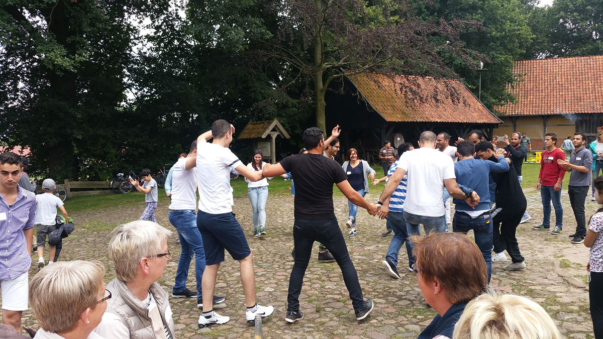 Jedes Jahr treffen sich die Emsbürener und Salzbergener Flüchtlinge und Integrationslotsen zum gemeinsamen Sommerfest. Da das Fest im letzten Jahr in Salzbergen stattfand, machten sich dieses Jahr etwa 40 Sudanesen, Syrer, Ivorer, Afghanen und Deutsche aus Salzbergen auf den Weg zum Heimathof in Emsbüren.