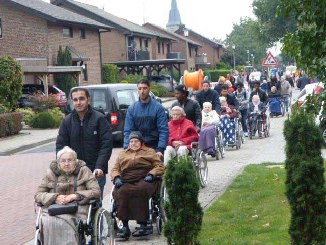 Auch dieses Jahr wollten sich die Bewohner des Altenheims St. Josef einen Besuch auf der Salzbergener Kirmes nicht entgehen lassen. Am Montagnachmittag warteten über 20 Bewohner gespannt darauf, von den Flüchtlingen und einigen anderen ehrenamtlichen Helfern abgeholt und mit den Rollstühlen zur Kirmes gefahren zu werden.