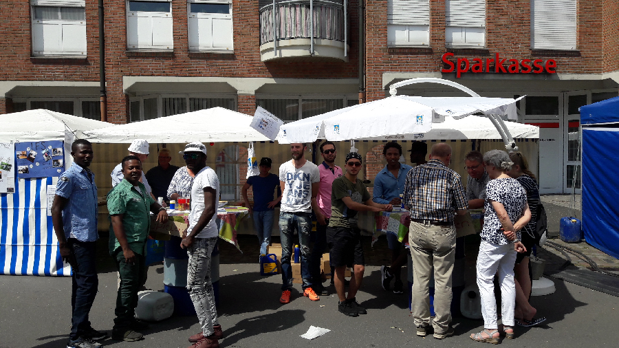Bei strahlendem Sonnenschein kamen zahlreiche Besucher, sodass reges Treiben am Stand der H & R herrschte. Unter den Standhelfern befanden sich auch viele Flüchtlinge, die sich freuten, die Besucher des Marktes zu einer Partie Knobel für den guten Zweck zu animieren.