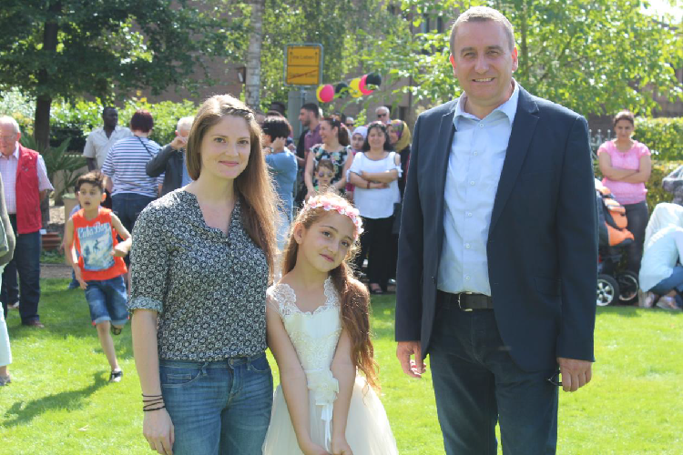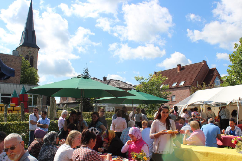 „Viele Länder, viele Sprachen, viele Religionen – aber wir sind Freunde und Familie“: Dieser auf dem bunten Bild eines Kindes festgehaltene Satz beschreibt vortrefflich die Stimmung auf dem Sommerfest des IFS, dem Internationalen Freundeskreis Salzbergen e.V. Die Sonne lachte vom Himmel auf den Garten Eden in Salzbergen herab und alle lachten mit. Auf dem im jährlichen Wechsel mit den Integrationslotsen Emsbüren organisierten Fest der bunten Gemeinschaft haben kleine und große Leute quer durch alle Kulturen gemeinsam geplaudert, gegessen, getanzt und ganz einfach zueinandergefunden. „Sprecht an, wen ihr noch nicht kennt, denn dies ist ein Fest der Begegnung“, dankte IFS-Vorsitzende Mara Schulten allen, die sich in vielfältigster Weise für die Integrationsarbeit einsetzen und denen, die bereits so gut integriert sind, dass sie das Gemeindeleben selbst aktiv mitgestalten und dort Hand anlegen, wo sie gebraucht wird.